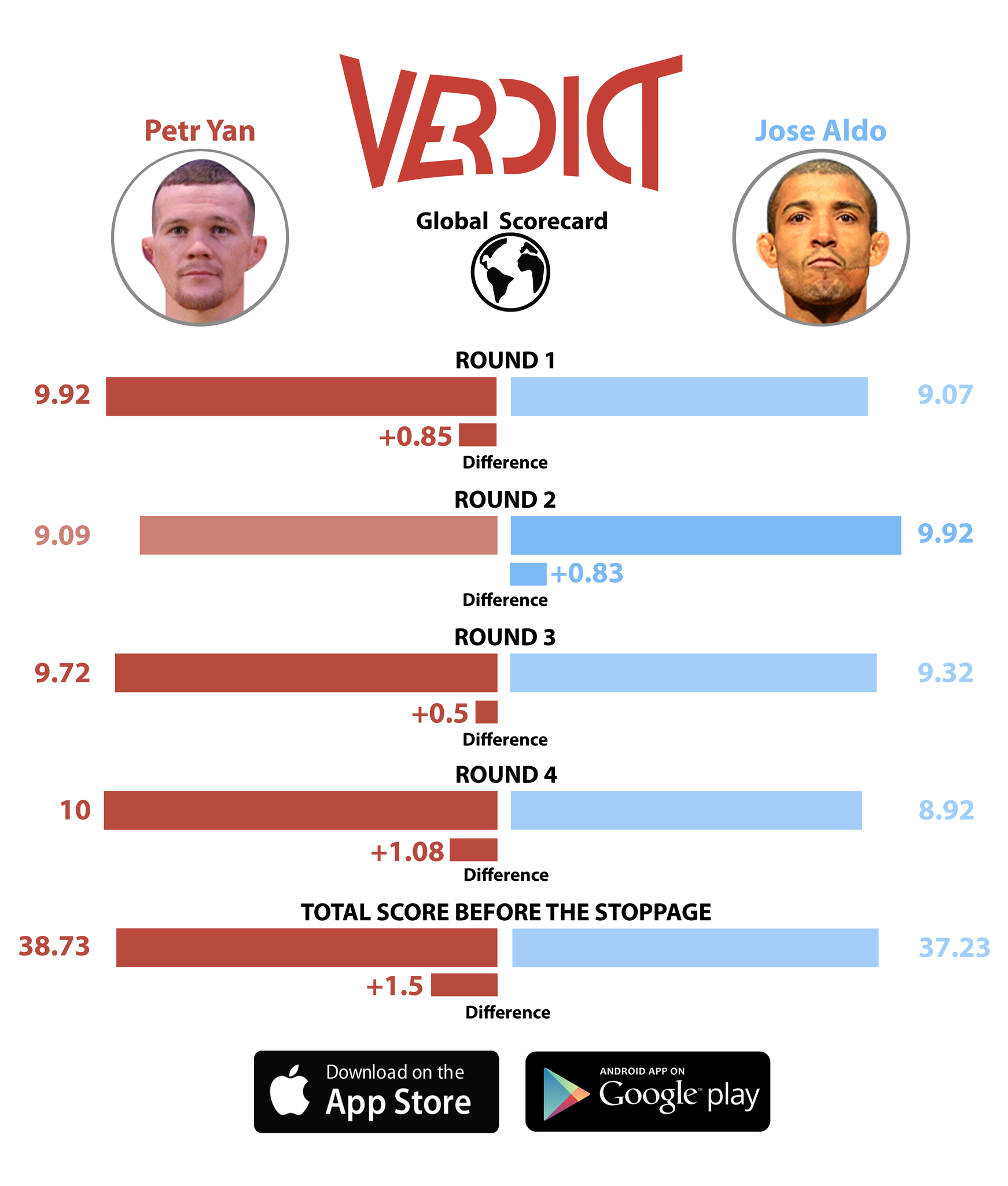 13 aldo ganó la pelea por ko técnico en la cuarta ronda jose aldo. Aldo tenía pactada la revancha de su combate con chad mendes en ufc 142 para ufc 176.